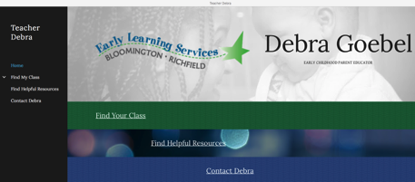 The Challenge: Each of our parent educators was in a different place in terms of their use of technology. One had build a website previously, for a photography business she owns. It became very clear that we needed to leverage existing skills. Initially, we focused on building sites using linked Google Docs that the teachers already knew how to use and share. I purchased domain names for each of our teachers, such as teacherdeb.com. The sites had to be ready to use by November.