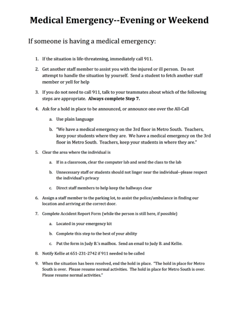 My Role: As the team leader, I drafted each of our procedures and presented them to the team. We made changes to reflect the unique needs of each of our programs. I also coordinated our drills with our interal and external partners. I was present as an observer for most of our drills from 2013-2015. After each drill, we'd gather the invovled BERT team members and debrief about what went well and what needed improvement. I also coordinated the supplies for our classroom emergency kits, hallway signage, and BERT team member radios.