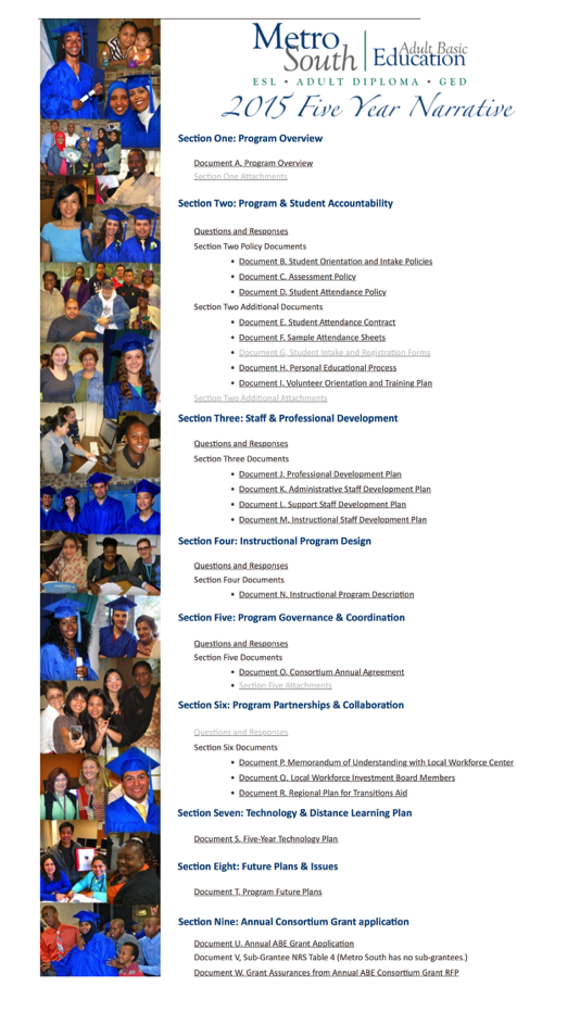 The Challenge: Adult basic education programs are required to submit a comprehensive program narrative to MDE every five years. The narrative documents every aspect of an ABE program. Program design, curriculum, professional development, community partnerships and marketing, technology plans, and school policies are all covered. This is a large, time-intensive project. Our 2010 narrative resulted in a 2-inch thick binder, with over thirty page of written work, supporting attachments, and sample artifacts.